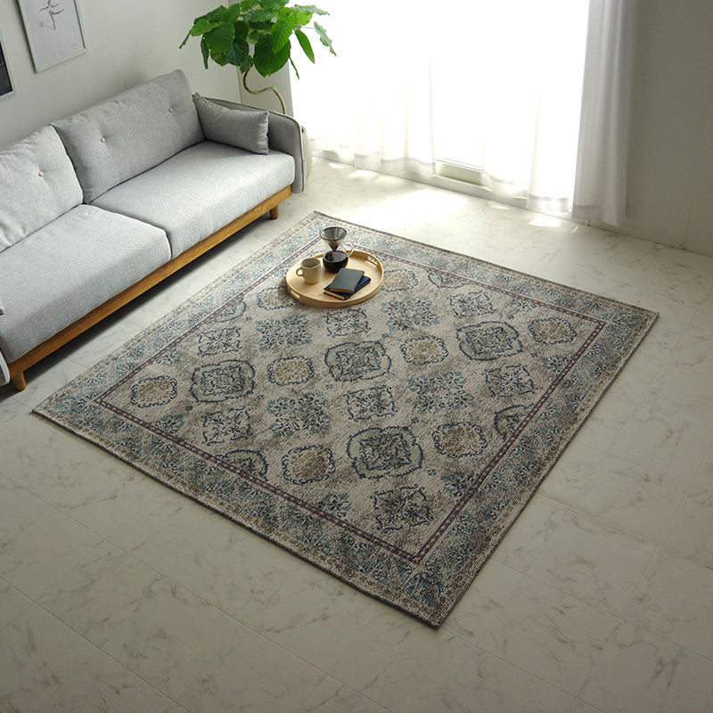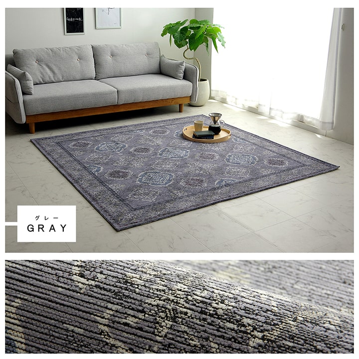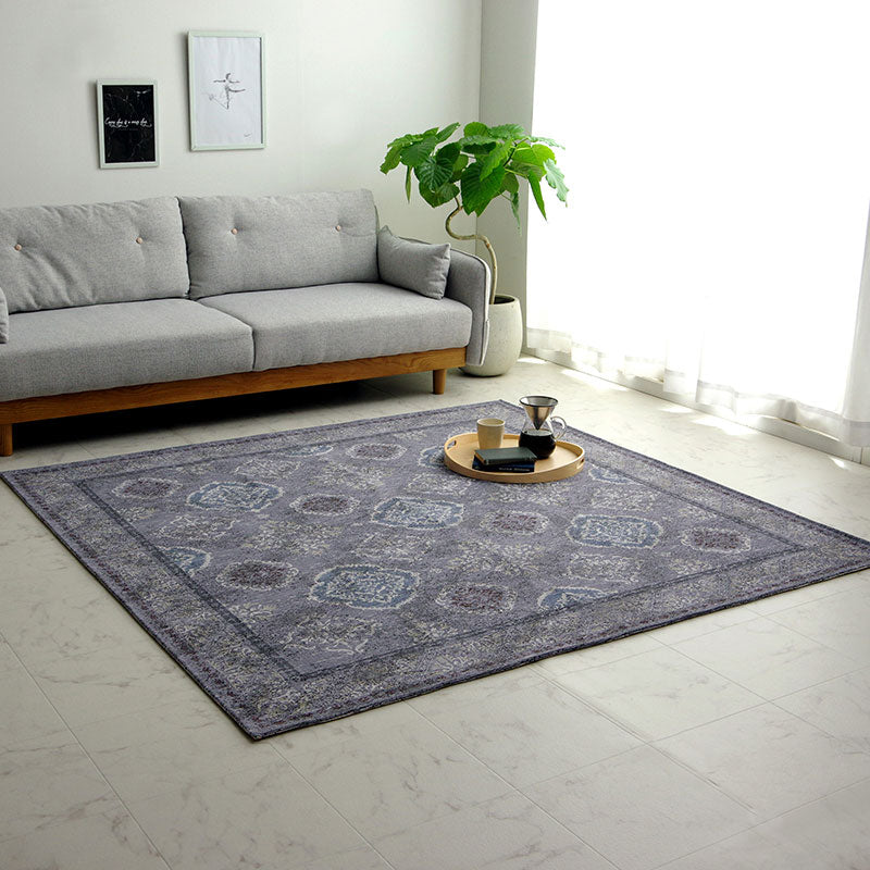 デザイン性が高く、耐久性にも優れています。 模様がかすれたように見え、アンティークな雰囲気を演出します。 遊び毛が出にくいシェニール糸を使用し、毛足が短いためお掃除も簡単です。 裏面にはフローリングを傷つけにくい不織布貼りで、滑り止め加工も施しています。 ホットカーペット、床暖房対応です。季節を問わず一年中お使いいただけます。 コンパクトに畳めるため、収納にも場所を取りません。又、軽量なため女性でも簡単に持ち運びできます。