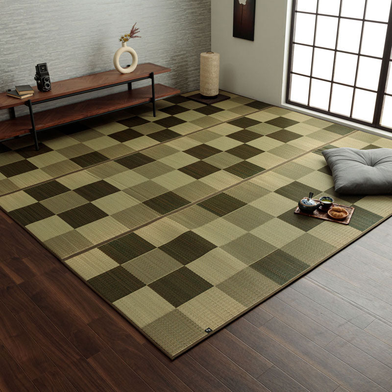 シンプルで飽きのこないブロック柄のい草カーペット ブロック