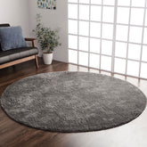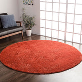 シャギー調の毛足は約18mmでふかふかとした感触とさらさらとした肌触りがとても気持ちいい商品です。裏面には滑りにくい加工を施しているためフローリングでも安心してご使用いただけます。撮影商品のサイズは円形185cmです。