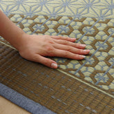 伝統工芸である組子のデザインをい草で表現したラグです。