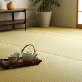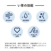 国産い草は一本一本が太く、表皮が厚く繊維がきめ細かいので弾力性があり、耐久性に優れています。い草には空気の清浄作用、湿度の調整作用があります。また汚れにくく、使用するうちに黄金色に変化し味が出るため長くお楽しみいただけます。敷くだけで畳のお部屋をリフレッシュできます。傷んだ畳のリフレッシュに、新品の畳を汚さないためのカバーにご使用下さい。