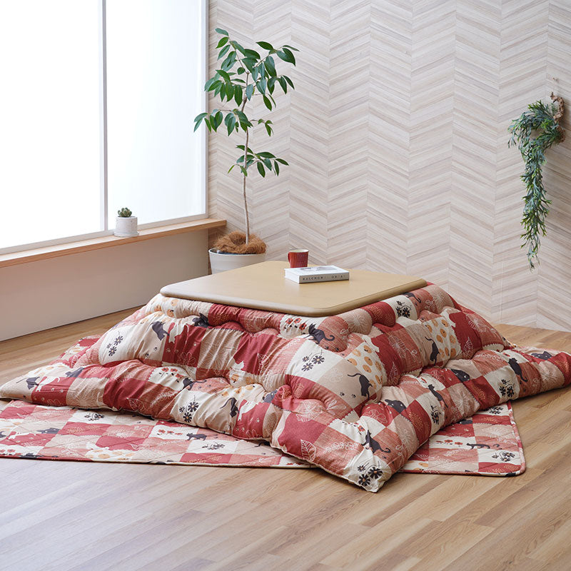 和と北欧柄をミックスさせたネコ柄こたつ布団掛敷セット
