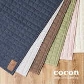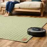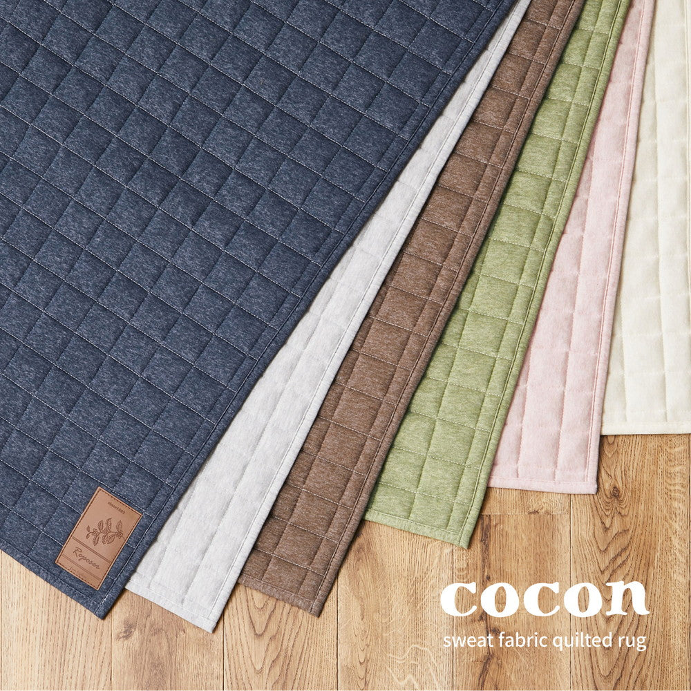 綿混のスウェット生地は肌ざわりがよく、季節を問わず使いやすい素材感です。 汚れても洗濯機で丸洗いできるから清潔に使え、小さなお子様やペットのいるご家庭でも安心。 裏面には滑り止め付き。ホットカーペット・床暖房にも対応しています。 霜降りの入った深みのあるカラー、全6色からお選びいただけます。