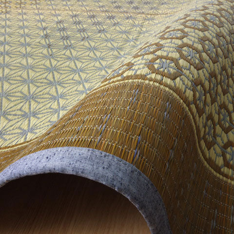 伝統工芸である組子のデザインをい草で表現したラグです。