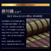 厳選された良質の太く長いイ草を高密度に織り込んでいますので丈夫で耐久性があり、しかも素足に心地よいクッション性とボリューム感があります。