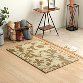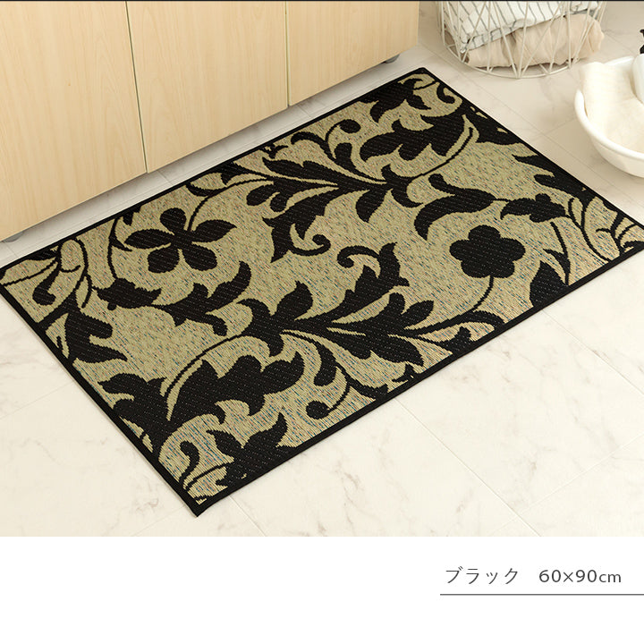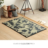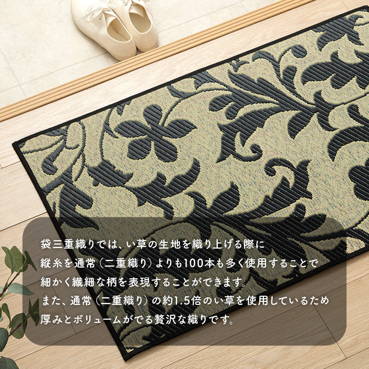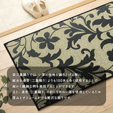 一本一本が太く、表皮が厚く繊維がキメ細かいので弾力性があり、耐久性に優れています。い草には空気の清浄化作用、湿度の調節作用があり、汚れにくいといった特徴があります。青森県のヒバの木から抽出した「ヒバエッセンス」をメーカー独自の技術で生地表面に加工しました。ヒバエッセンスにはヒノキチオールという天然物質が含まれており、抗菌防臭効果があります。裏には適度なクッション性があり、滑りにくい国産のウレタンを貼っています。