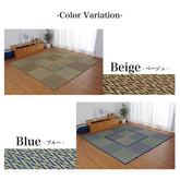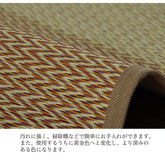 い草には空気の自然浄化作用、湿度の調節作用などがあります。汚れにくく、使用するうちに黄金色に変化し味が出ます。フローリングを傷つけにくいよう、裏には不織布を貼っています。い草に青森ヒバ加工を施しています。(抗菌防臭効果)