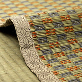 レトロなデザインのい草上敷き やわらかな色味とヘリの伝統的な紋様がマッチ 西条