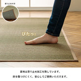 裏は滑り止め不織布ですので、安心してご使用頂けます。コンパクトに折り畳めて省スペースに収納できます。い草には空気の清浄作用、湿度の調整作用があり、汚れにくいといった特徴があります。敷くだけでお部屋をリフレッシュできます。青森県のヒバの木から抽出した「ヒバエッセンス」をメーカー独自の技術で生地表面に加工しました。ヒバエッセンスにはヒノキチオールという天然物質が含まれており、抗菌防臭効果があります。