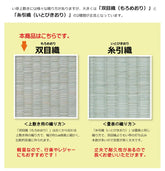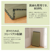 国産(九州産)のい草を使用しています。国産い草は一本一本が太く、表皮が厚く繊維がキメ細かいので弾力性があり、耐久性に優れています。い草には空気の清浄化作用、湿度の調節作用があり、汚れにくいといった特徴があります。い草に青森ヒバ加工を施しています。(抗菌、防臭効果)表裏の両面が使えて経済的です。