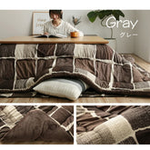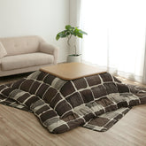 パッチワーク風のデザインをしたこたつ布団です。国内でわた入れをしています。側地にはポリエステル素材を起毛させた柔らかい生地を使用しています。部分暖房のこたつは電気代もおトクです。