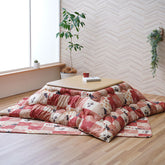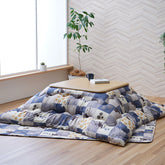 和と北欧柄をミックスさせたテイストの中にかわいらしいネコ柄をデザインしたこたつ布団。 こたつ布団と敷布団の2点セットで統一感のあるお部屋に! 表地にはやわらかい触り心地のピーチスキン加工の生地を使用しています。