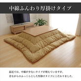 綿を使用したこたつ布団です。織りで素材感を表現することにより、柔らかな味のある雰囲気に仕上げました。綿はポリエステルに比べ、冬場に気になる静電気がおきにくく、繊維の中でも特に肌触りが良いのが特長です。多色多サイズ展開ですのでお部屋にぴったりの色・サイズをお選び頂けます。