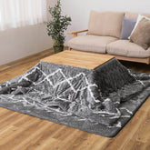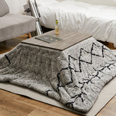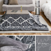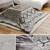 手描き風のゆるいラインが味わい深く、ぬくもりのあるベニワレン風デザインのこたつ布団。モノトーンで主張しすぎず、インテリアにも馴染むデザインです。先に糸を染色し、そのあとに生地を織ることで糸全体が染まり、一般的なプリント生地よりも色に深みと高級感が生まれます。収納もしやすい薄掛けタイプで、ご家庭の洗濯機で洗えるのもうれしいポイント。