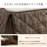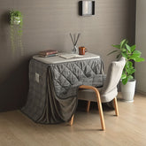 おしゃれなチェック柄のこたつ布団で、2色からお選びいただけます。 脚を付け替えることによってハイタイプ・ロータイプへ変更できます。 椅子も脚を外すと座椅子になります。 こたつ台は、和室にも洋室にもあわせやすいシンプルデザイン。