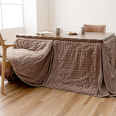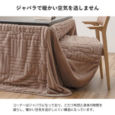 天板を固定する金具通しの穴付きなので、天板と布団のズレを軽減してくれます。 コーナーはジャバラになっており、こたつ布団と身体の隙間を減らし、暖かい空気を逃がしにくい構造です。 洗濯機での丸洗いが可能です。