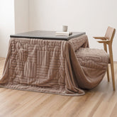 普段のダイニングで過ごす団欒を、こたつの温もりを感じながら楽しめます。 手触りなめらかなラビットファー調生地を使用しています。 側面にはポケットが付いており、リモコンや小物を収納しておくことができます。