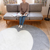 リンゴにもおしりの形にも見える面白い形のデザインラグです。カーテンと合わせて提案しやすいコーディネート性とファッション性を併せ持った万能アイテムです。
