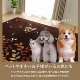 撥水加工を施しているので日常のちょっとした汚れからラグを守ります。コンパクトにたためるので収納にも場所を取りません。裏面はフローリングを傷つけにくい不織布張りで、滑り止め加工を施しています。床暖房・ホットカーペットにも対応しており、オールシーズンお使いいただけます。