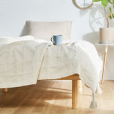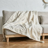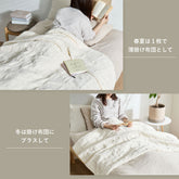 身体に沿う生地感と程よい重みが、安心感のある使い心地を生み出します。春夏は1枚で薄掛け布団として、冬は掛け布団にプラスして。ソファに掛ければソファカバーや大判ブランケットとしても活躍し、空間に温もりを添えてくれます。縦型洗濯機で洗えるため、日常使いしやすく、低ホルムアルデヒド仕様で小さなお子さまやペットのいるご家庭でも安心。シングル・ダブルのサイズ展開で、暮らしに合わせて選べる一枚です。