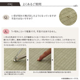 汚れにくく、使用するうちに黄金色に変化し味が出ます。い草にヒバエッセンス加工を施しています。(抗菌防臭効果)裏にはフローリングを傷つけにくいよう不織布を貼っています。