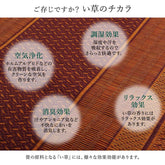 国産(九州産)のい草を使用しています。一本一本が太く、表皮が厚く繊維がキメ細かいので弾力性があり、耐久性に優れています。い草には空気の自然浄化作用、湿度の調節作用などがあります。
