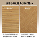6畳編むのに3週間かかる手の込んだあじろ織り独自の編み模様が高級感と涼感をかもしだすます。冷たくしなやかでとても肌触りがよく、籐だけで編んでいますのでとても長く10年以上使用できる逸品です。使い込むほどに綺麗な飴色に変化していきます。