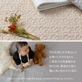 コットン100%で赤ちゃんの肌にもやさしく、中綿が入ったキルティング生地でふわっとやわらかな肌ざわり。