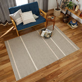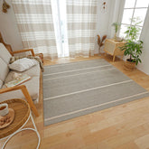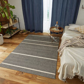 さりげないストライプがインテリアを格上げしてくれます。 綿混のラグマットで、手触りもスッキリとしていて、色合いが自然素材ならではのやさしさになります。