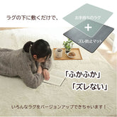 お使いのラグの下に敷くだけで、厚み・クッション性を持たせることができる下敷きラグです。表・裏の両面に滑りにくい加工を施しているため、ラグがズレにくく快適です。中材に厚み10mmのウレタンフォームを使用しているため、薄いラグの底付き感にクッション性をプラスできます。ホットカーペットにも対応しています。