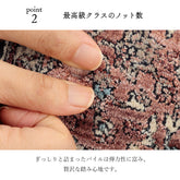 繊維の密度を表すノット数は1,000,000ノットです。 一般的なウィルトンマットは目付が約30万ノット前後の商品ですが、この商品はその約3倍強の100万ノットの調高目付で織り上げられたマットです。