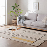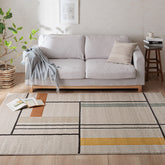 カラーとデザインの組み合わせを工夫し、あらゆるインテリアスタイルになじみやすいウィルトンラグに仕上げました。直線的なデザインとドロップステッチ製法を組み合わせることでより立体感を持たせています。
