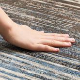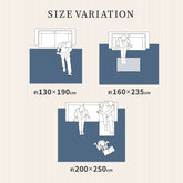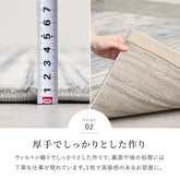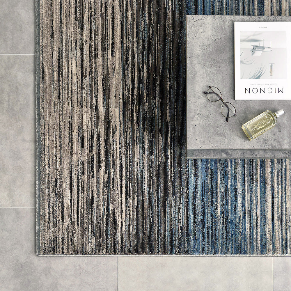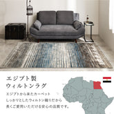 くすみ感のあるブルーやチャコールグレーを使った繊細なグラデーション風デザインで、落ち着きのある大人な雰囲気のお部屋に。しっかりと詰まった高密度なパイルで短毛ながらもボリュームを感じられる一枚に。ウィルトン織りは、表面のパイル糸を下糸に直接絡み合わせて織り込んでいるため耐久性にも優れており、お気に入りのラグを長く使いたい方にもおすすめです。