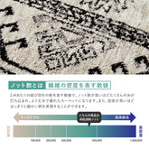 しっかりと詰まった高密度なパイルで短毛ながらもボリュームを感じられる一枚に。ウィルトン織りは、表面のパイル糸を下糸に直接絡み合わせて織り込んでいるため耐久性にも優れており、お気に入りのラグを長く使いたい方にもおすすめです。