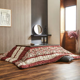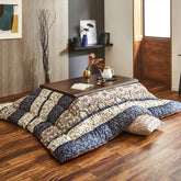 華やかな雰囲気を演出してくれるエレガンス柄のこたつ布団。 ふっくらとしたボリューム感は国内で綿入加工をしている商品だからできる仕上がりです。 裏地にはあったか素材のフランネルを使用しています。