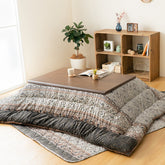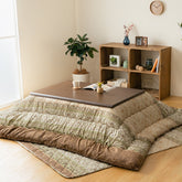 エレガンス調の細かいデザインが印象的なこたつ布団。 ふっくらとしたボリューム感は国内で綿入加工をしている商品だからできる仕上がりです。 裏地にはあったか素材のフランネルを使用しています。