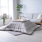 北欧風のお部屋にも和室にも合うジャパンディテイストのこたつ布団です。 しっかりとしたジャガード織り生地に、日本古来の和小紋をイメージしたタンポポ柄をデザインしました。 表地には綿糸を使用しているため、柔らかい手触りで気持ちが良いです。 裏地にはふんわりやわらかなフランネル素材を使用しています。