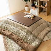 エレガンス調の細かいデザインが印象的なこたつ布団。 こたつ布団と敷布団の2点セットで統一感のあるお部屋に! ふっくらとしたボリューム感は国内で綿入加工をしている商品だからできる仕上がりです。 裏地にはあったか素材のフランネルを使用しています。