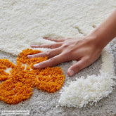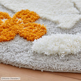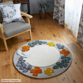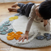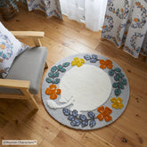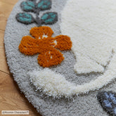 お花の向こう側で、何か探し物?ムーミンがおしりをこちらに向けている、まん丸なラグです。