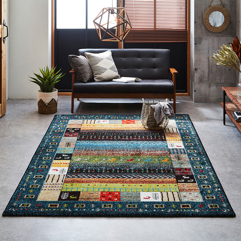 ギャッベ柄デザインのラグ トルコ製ウィルトンカーペット イビサ