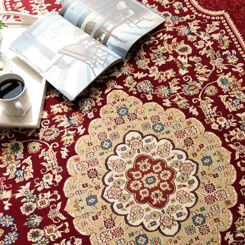また、高密度にパイルを織り上げることで、耐久性プラス繊細な柄を表現できるのも特徴です。本商品の『繊維の密度を表すノット数』は75万ノットの最高級クラスです。ぎっしりとパイルが詰まっていますので弾力性に富み踏み心地もしっかりとしています。また、パイル数を多くすることにより、より繊細でより色鮮やかなメダリオン柄を表現しました。プリントものには出せない高級感・重厚感のある繊細な柄をお楽しみ下さい。本商品のパイル部分にはポリプロピレン素材を使用しております。ポリプロピレンはヘタリにくく、耐久性に優れ、繊維の中でも軽い素材です。