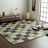 色の濃淡をブロック状に並べたモダンない草ラグ
