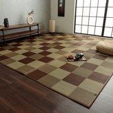 国産(九州産)のい草を使用しています。一本一本が太く、表皮が厚く繊維がキメ細かいので弾力性があり、耐久性に優れています。ご家庭のフローリングの色や家具、カーテンなどにも合わせやすく、1枚敷けばより一層おしゃれな空間を作ることができます。3色展開でお部屋にあった色を選ぶこともできます。