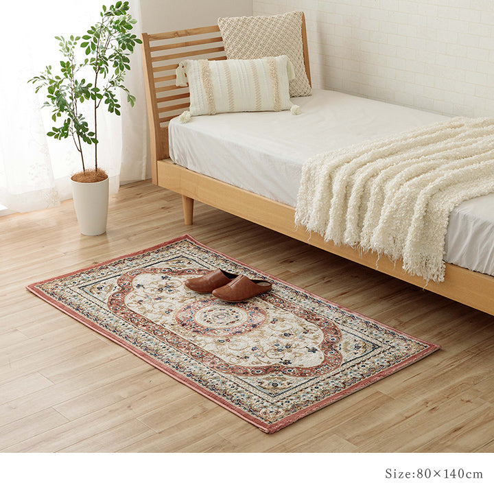 アイボリーホワイトベースで可愛らしいクラシック柄のウィルトンラグ。特殊な糸をつかって表現されたデザイン柄が高級感と可愛らしさを引き出してくれます。
