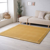 中材はウレタンフォーム10mmを使用し、底付き感を感じにくく快適な座り心地です。裏面はフローリングを傷つけにくい不織布張り。滑り止め加工も施しています。手洗いでお洗濯できるのもうれしいポイント。毛足が短いので、掃除機でサッとお掃除できます。床暖房対応。オールシーズンお使いいただけます。