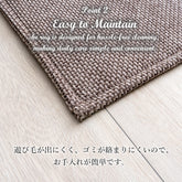 床暖房対応なので、一年中お使いいただけます。 遊び毛が出にくく、ゴミが絡まりにくいので、お手入れが簡単です。 万一汚れても手洗いができるのも嬉しいポイント。