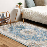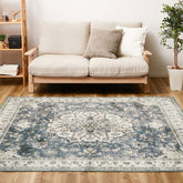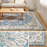 小さな模様や、ヴィンテージのようなかすれ感を細部までプリントで表現した、まるで高級ラグのような一枚。