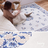 シノワズリデザインのプリントラグ 短毛でやわらかくオールシーズン快適 ミュゲ