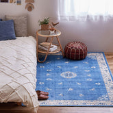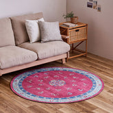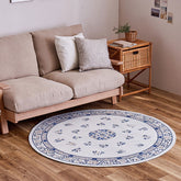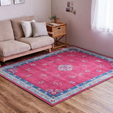 どこか東洋を感じさせるような花柄の絨毯風デザイン。その細やかなデザインを、転写プリントで美しく表現したなめらかフランネルラグ。