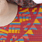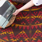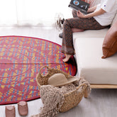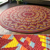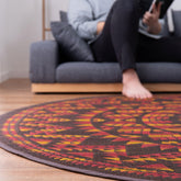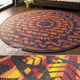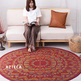 円形い草ラグ アステカ柄を取り入れたクールなデザイン アステカ